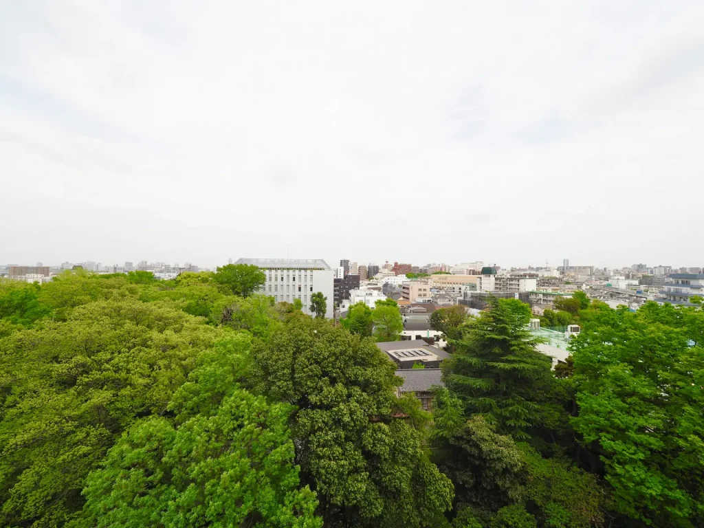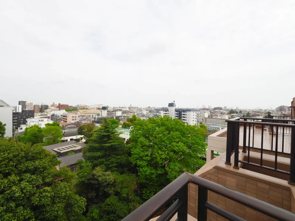 9階部分につき、採光・通風ともに良好。周囲の建物との距離も確保されており、開放感のある住空間です。