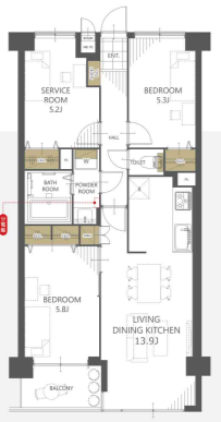 | 専有面積/バルコニー面積 | 66.71㎡/4.05㎡ |