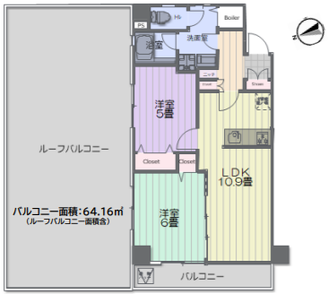 | 専有面積/バルコニー面積 | 55.86㎡/64.16㎡ |
