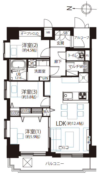 | 専有面積/バルコニー面積 | 60.76㎡/8.15㎡ |